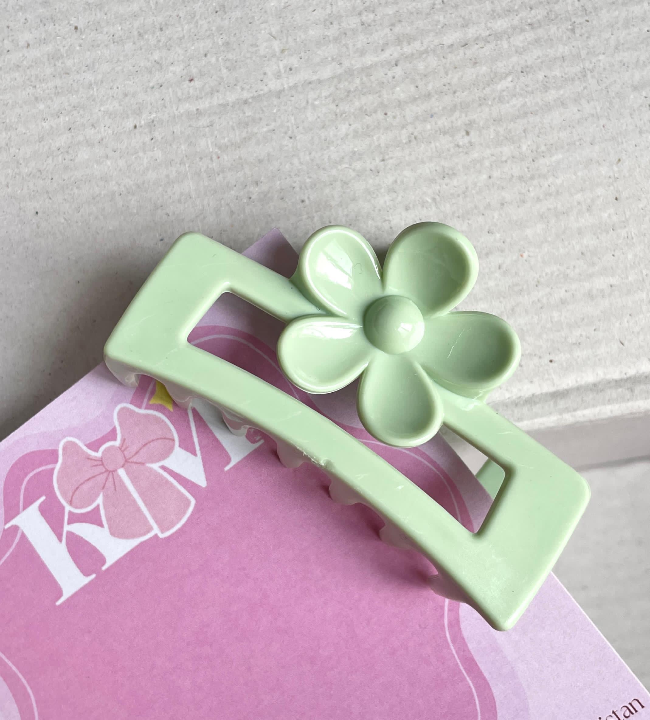 PASTEL GREEN Square Flower Claw – Medium