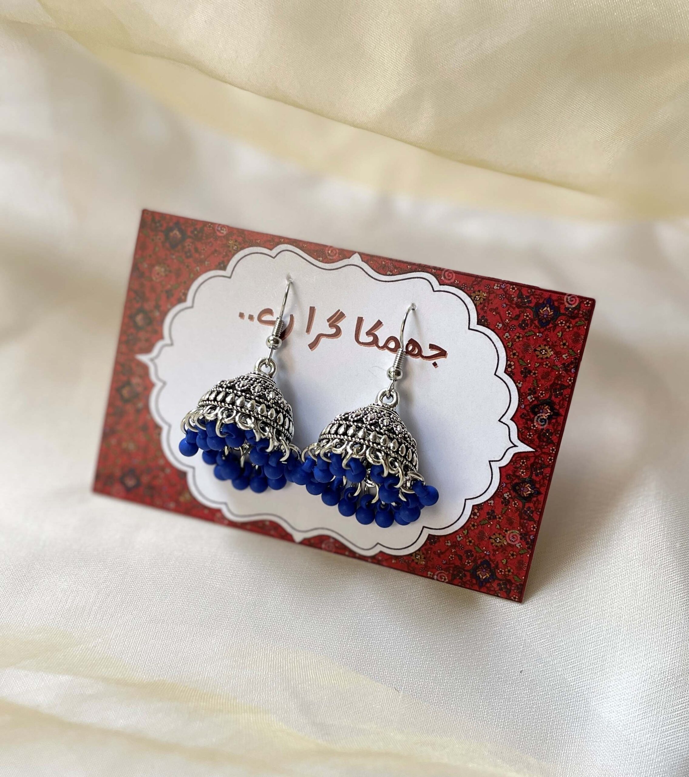 ROYAL BLUE – Silver Antique Jhumki